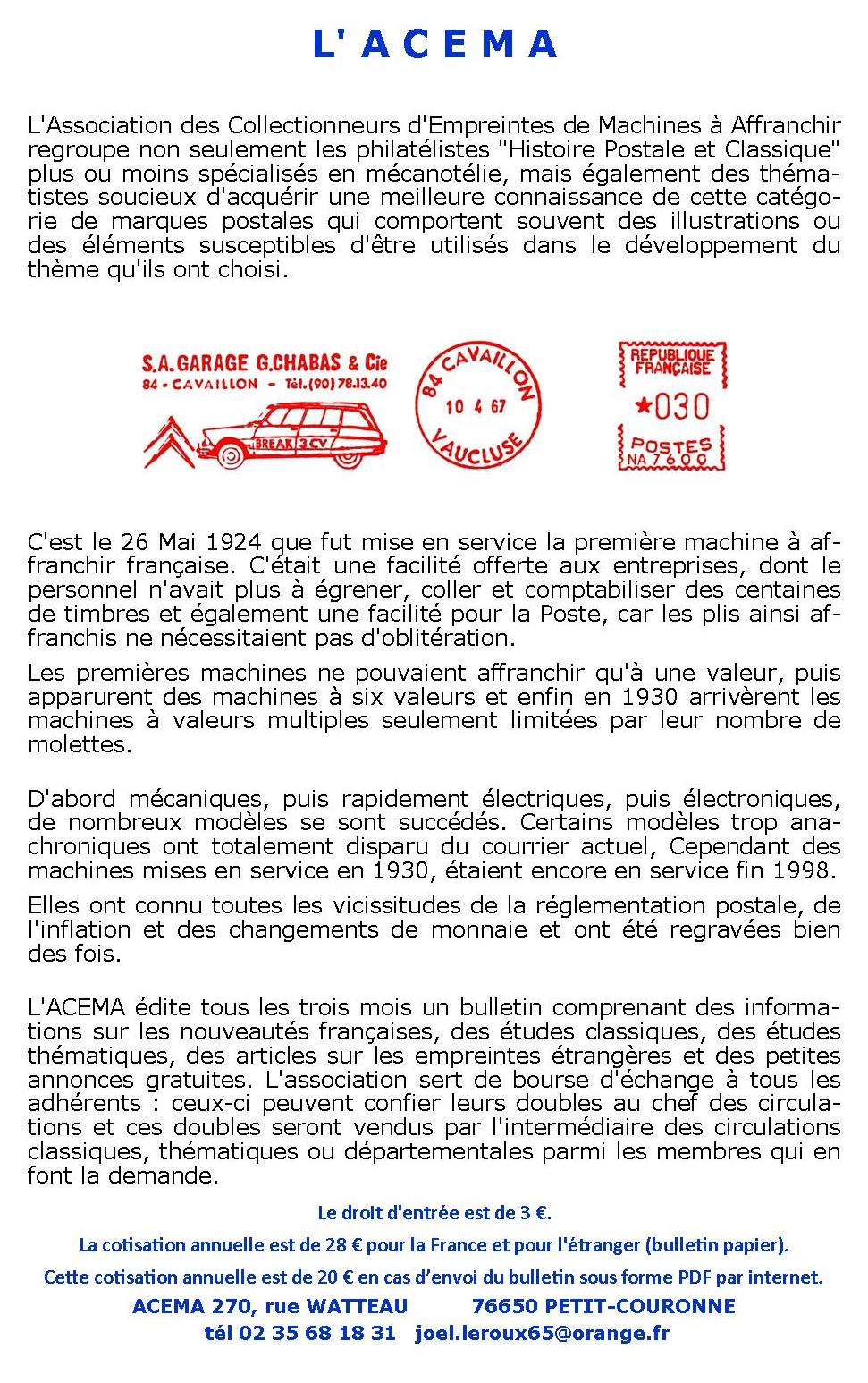 Les pages de l' A C E M A